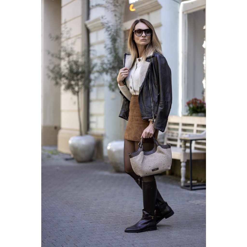 Dvě tváře, dvě velikosti - taková je kabelka Dua od italské značky Gianni Chiarini. Ušitá z tkané vlněné látky s detaily hovězí kůže dollaro.