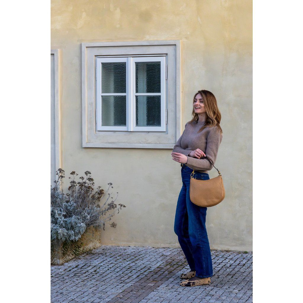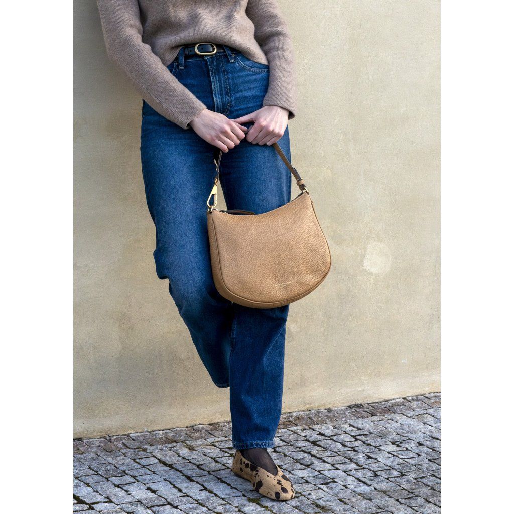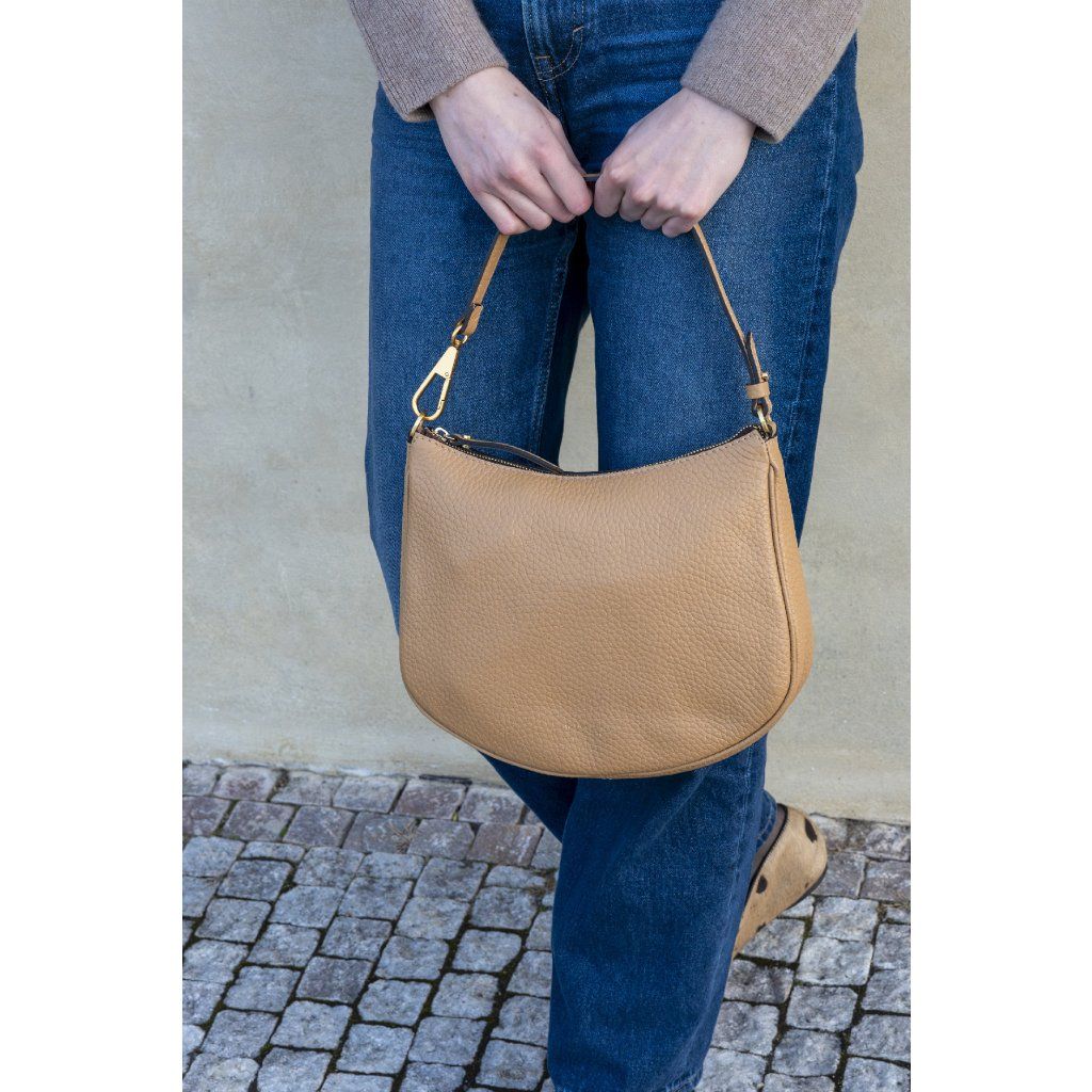 Půlkulatý tvar této kabelky oživí každodenní outfit. Kožená kabelka Brooke je ušitá z kvalitní hovězí kůže dollaro s maxi zrnitostí která je velice efektní.